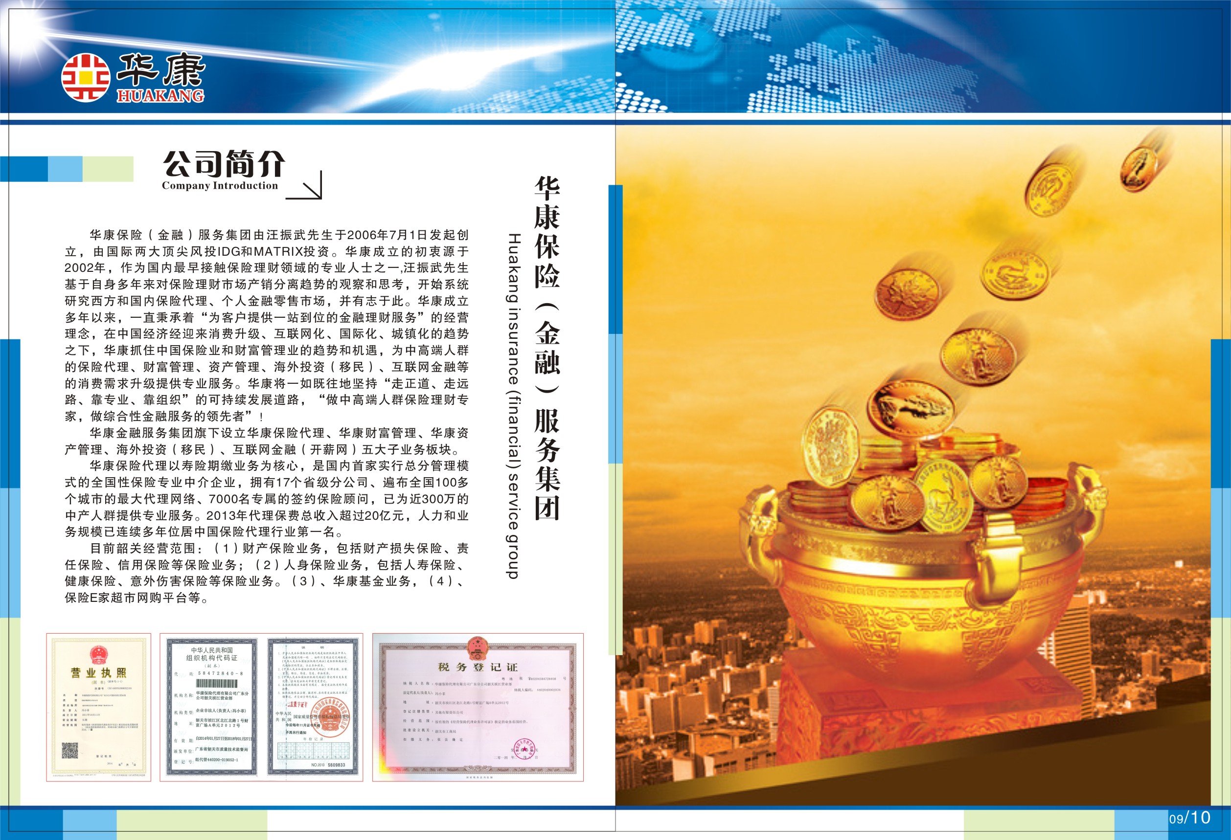 華康金融服務集團由汪振武先生于2006年7月1日發起創立,由國際兩大頂尖風投IDG和MATRIX投資。華康成立的初衷源于2002年,作為國內最早接觸保險理財領域的專業人士之一,汪振武先生基于自身多年來對保險理財市場產銷分離趨勢的觀察和思考,開始系統研究西方和國內保險代理、個人金融零售市場,并有志于此。華康成立多年以來,一直秉承著“為客戶提供一站到位的金融理財服務”的經營理念,在中國經濟經迎來消費升級、互聯網化、國際化、城鎮化的趨勢之下,華康抓住中國保險業和財富管理業的趨勢和機遇,為中高端人群的保險代理、財富管理、資產管理、海外投資(移民)、互聯網金融等的消費需求升級提供專業服務。華康將一如既往地堅持“走正道、走遠路、靠專業、靠組織”的可持續發展道路,“做中高端人群保險理財專家,做綜合性金融服務的領先者”!